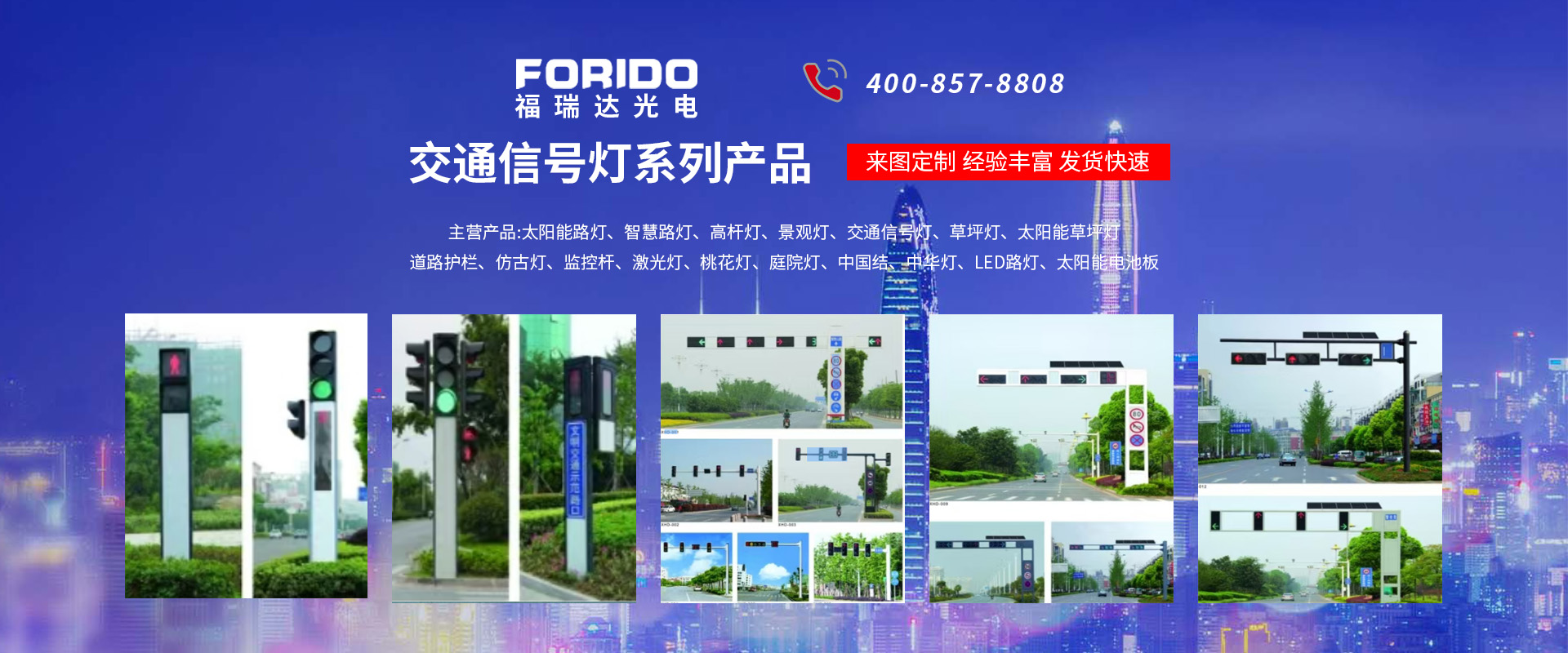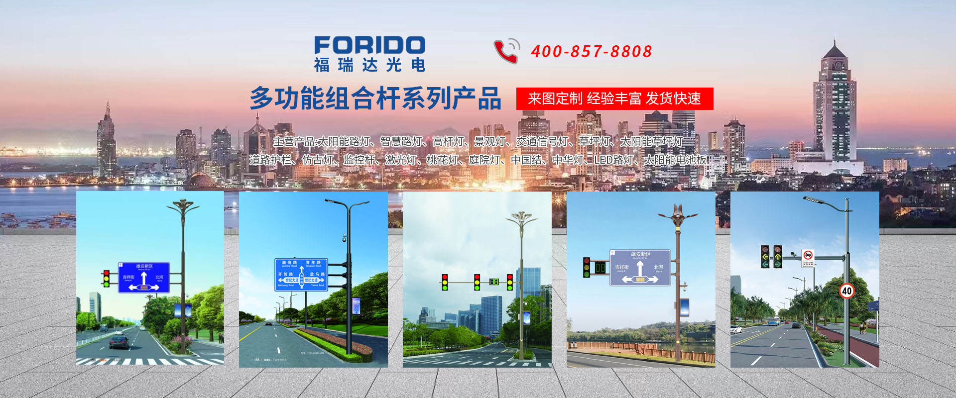 揚州福瑞達(dá)光電科技有限公司位于淮左名都?xì)v史文化名城、中國路燈制造基地?fù)P州市北郊菱塘工業(yè)園,公司占地面積76000平方米,注冊資金10518萬元,擁有高級技術(shù)嫻熟的員工280多人,擁有大型折彎機(jī)、激光切割、數(shù)控注塑機(jī)、壓鑄機(jī)、自動埋弧焊、氣焊、彩色粉末靜電噴塑等大型自動化設(shè)備,我公司是一家集設(shè)計、研發(fā)、生產(chǎn)、銷售、施工安裝服務(wù)為一體的戶外交通照明產(chǎn)品制造商,主要生產(chǎn)智慧路燈、太陽能路燈、LED路燈、高桿燈、景觀燈、交通信號燈、交通標(biāo)志牌、通信鐵塔、路跨鋼結(jié)構(gòu)、公交站臺、太陽能光伏組件、景點亮化、樓宇亮化工程的設(shè)計施工等。公司秉承開拓創(chuàng)新、銳意進(jìn)取、精誠服務(wù)的企業(yè)精神,堅持以“誠信為本、技術(shù)為先、服務(wù)是金”的合作理念,我們憑借先進(jìn)的制造工藝、優(yōu)質(zhì)的產(chǎn)品質(zhì)量、合理的市場價格和完善的售后服務(wù)贏得了廣闊的市場和客戶的信賴?! ∥夜疽淹ㄟ^ISO9001質(zhì)量體系認(rèn)證、ISO14001環(huán)境管理體認(rèn)證,CQC產(chǎn)品認(rèn)證,中國節(jié)能產(chǎn)品認(rèn)證,通過“CCC”強制性產(chǎn)品認(rèn)證,具有市政總承包,照明,交安,設(shè)計等資質(zhì)···